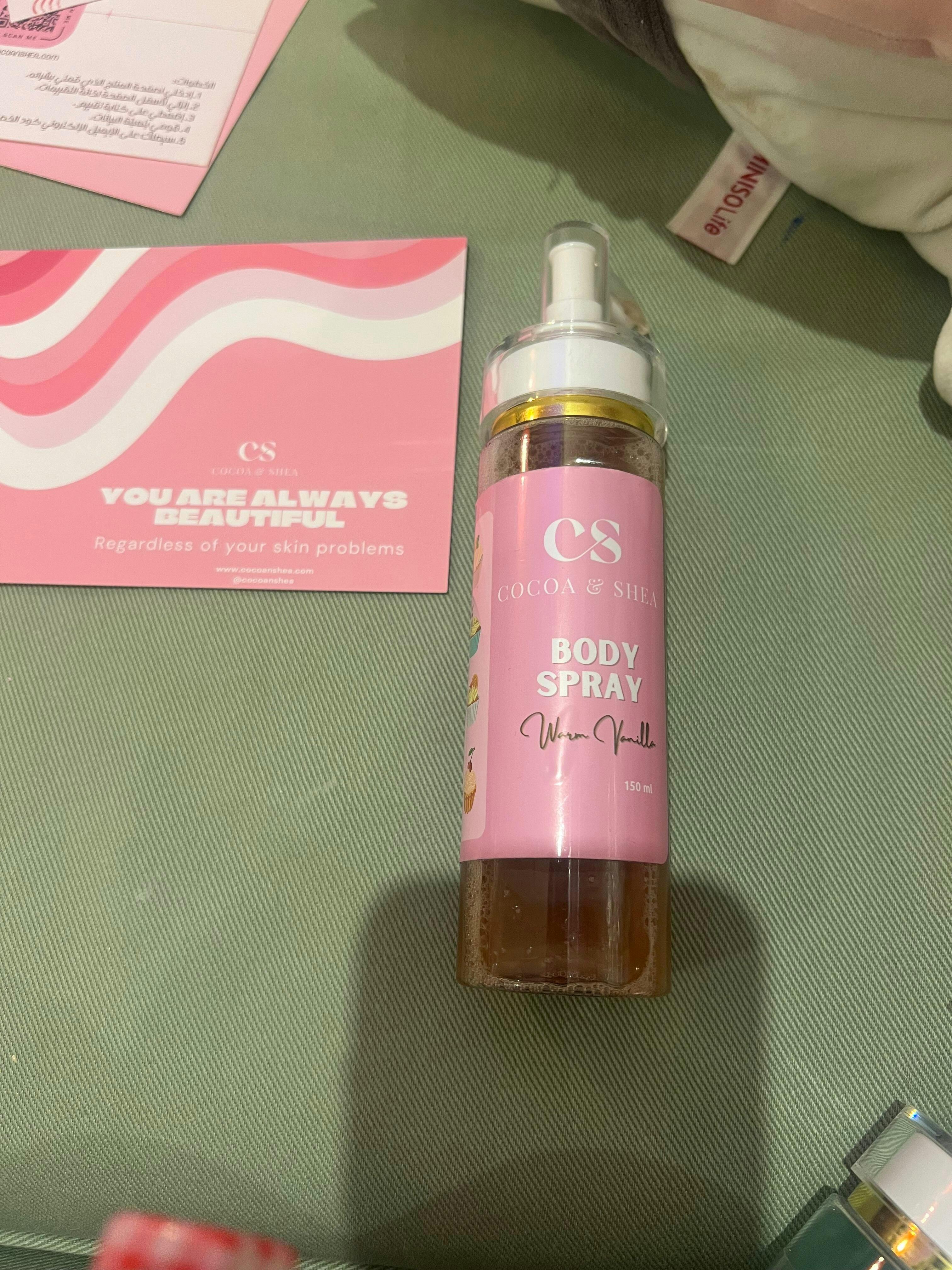 رشي عليّ لتتمتعي برائحة مثل كعكة الكب كيك الطازجة 🧁 بخاخ الجسم هذا هو عطر خفيف معطر مثالي للاستخدام اليومي. مصنوع من مكونات طبيعية فقط، وآمن للاستخدام على جميع أنواع البشرة. لقد صنعنا هذا المنتج خصيصًا لك لتتمتعي برائحة طيبة طوال الوقت. الرائحة نفسها عبارة عن مزيج من الدفء والحلاوة. لا تشبه رائحة الحلوى أو الحلوة جدًا. إنها مثالية تمامًا! خالية من الكحول والسموم. لا تجعل بشرتك جافة أو تجردها من الرطوبة الطبيعية. بدلاً من ذلك، تمنح بشرتك رطوبة إضافية لأننا أضفنا الجلسرين النباتي الذي يعمل على حبس الرطوبة داخل بشرتك. استخدميه في أي وقت من اليوم. أو فوق منتجات "الفانيليا الدافئة" الأخرى لحبس الرائحة لتدوم طوال اليوم. هذا المنتج 150 مل. سوف يدوم معك لفترة طويلة حقًا.