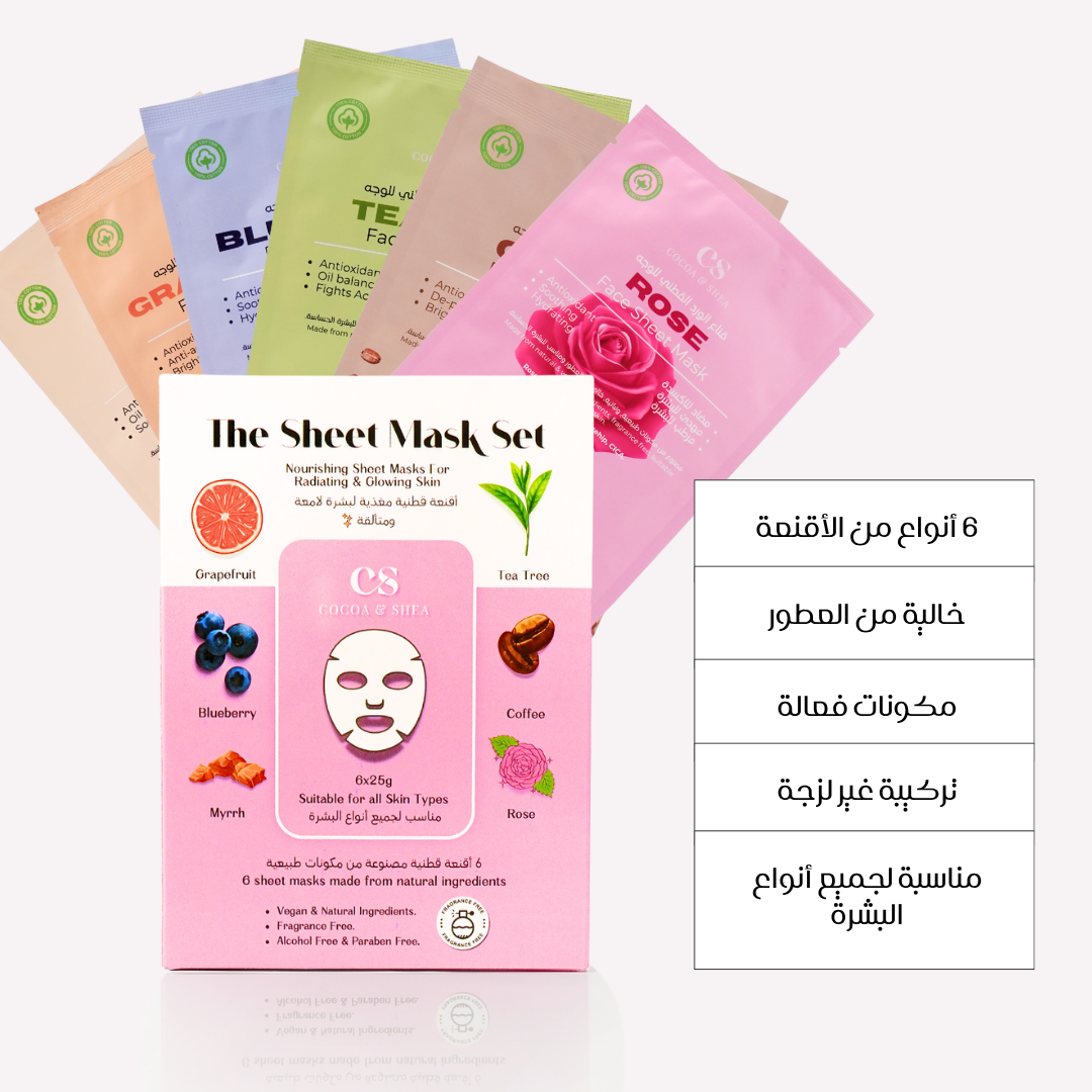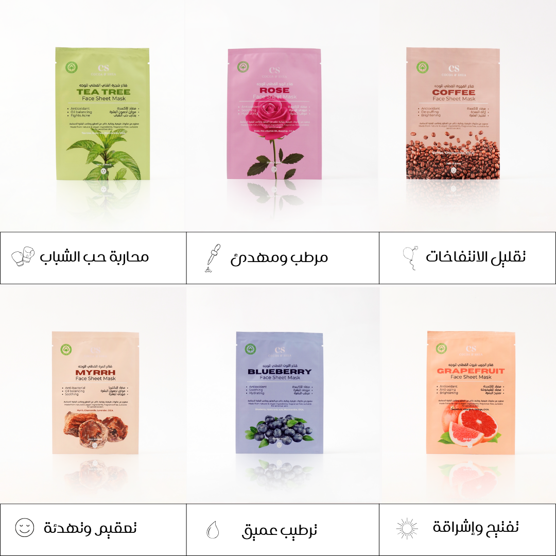 جددي بشرتكِ مع مجموعة أقنعة الوجه القطنية، المصنوعة بعناية من القطن 100%، والغنية بخلاصات نباتية خالية من العطور . تقدم هذه المجموعة المكونة من ستة أقنعة عناية دقيقة تلبي جميع احتياجات البشرة: من خصائص شجرة الشاي القوية في مكافحة حب الشباب وموازنة الزيوت، إلى فوائد الجريب فروت المُشرقة والمُضادة للشيخوخة. يُوفر كل قناع 25 مل من الترطيب بفضل مكونات مُهدئة مثل سنتيلا أسياتيكا ، والبابونج ، والنياسيناميد ، مما يُساعد بشرتكِ على التألق والتهدئة واستعادة توازنها بسهولة. دللي نفسكِ ببشرة مُتميزة تُغير روتينكِ وتُظهر بشرة أكثر صحة وإشراقًا.