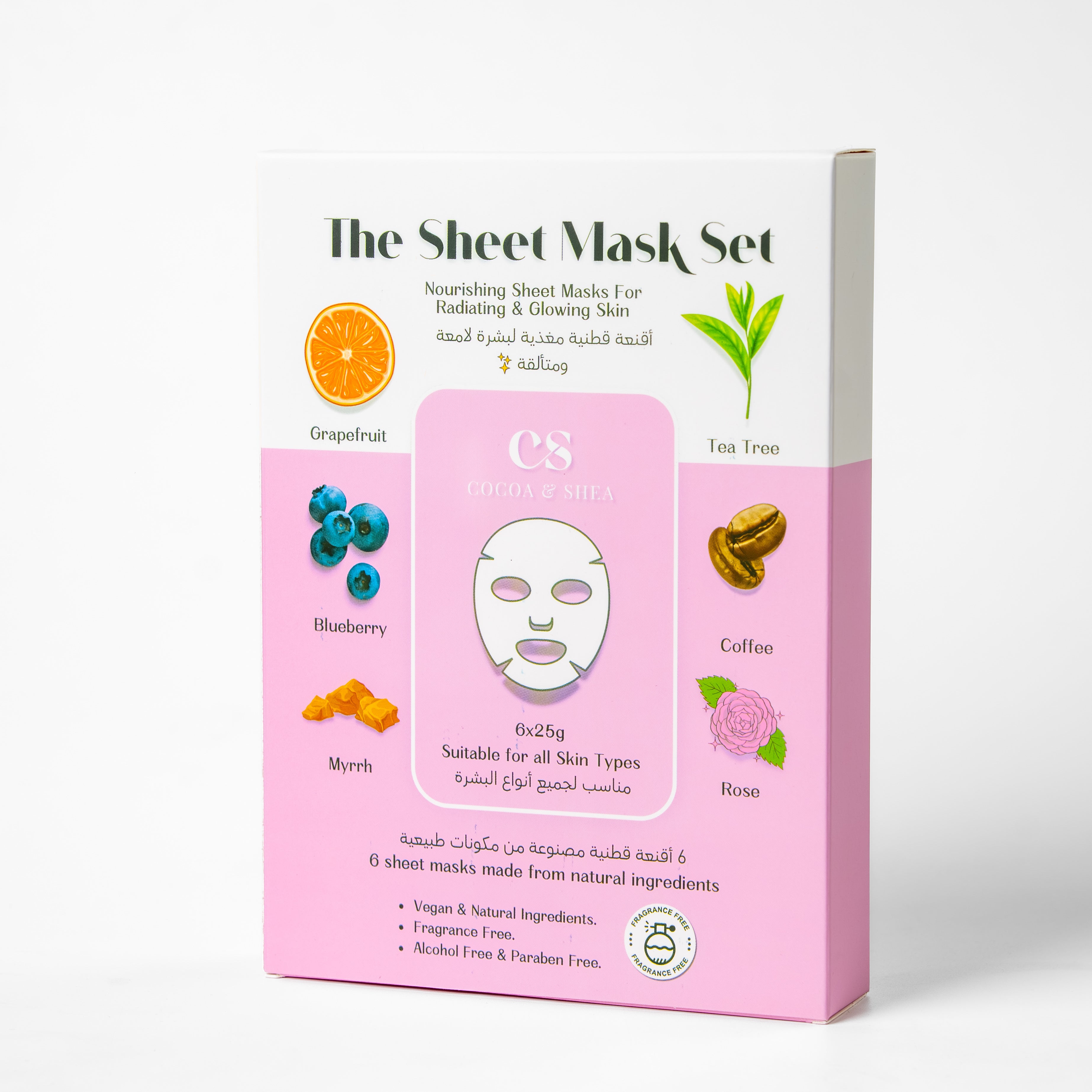 جددي بشرتكِ مع مجموعة أقنعة الوجه القطنية، المصنوعة بعناية من القطن 100%، والغنية بخلاصات نباتية خالية من العطور . تقدم هذه المجموعة المكونة من ستة أقنعة عناية دقيقة تلبي جميع احتياجات البشرة: من خصائص شجرة الشاي القوية في مكافحة حب الشباب وموازنة الزيوت، إلى فوائد الجريب فروت المُشرقة والمُضادة للشيخوخة. يُوفر كل قناع 25 مل من الترطيب بفضل مكونات مُهدئة مثل سنتيلا أسياتيكا ، والبابونج ، والنياسيناميد ، مما يُساعد بشرتكِ على التألق والتهدئة واستعادة توازنها بسهولة. دللي نفسكِ ببشرة مُتميزة تُغير روتينكِ وتُظهر بشرة أكثر صحة وإشراقًا.